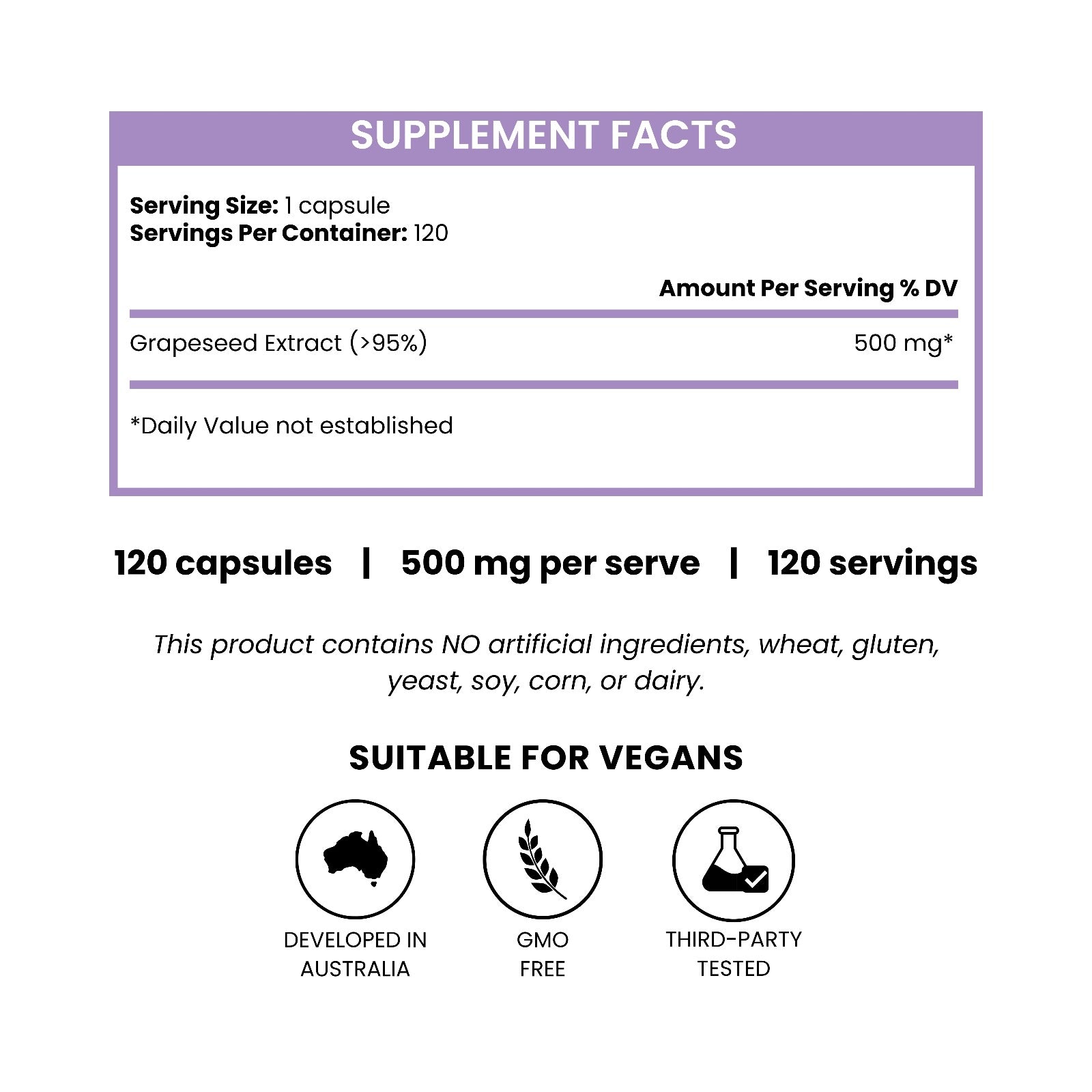 - Enhanced Antioxidant Protection: Resveratrol and Grapeseed Extract team up to neutralize free radicals, reduce oxidative damage, and protect against premature ageing.