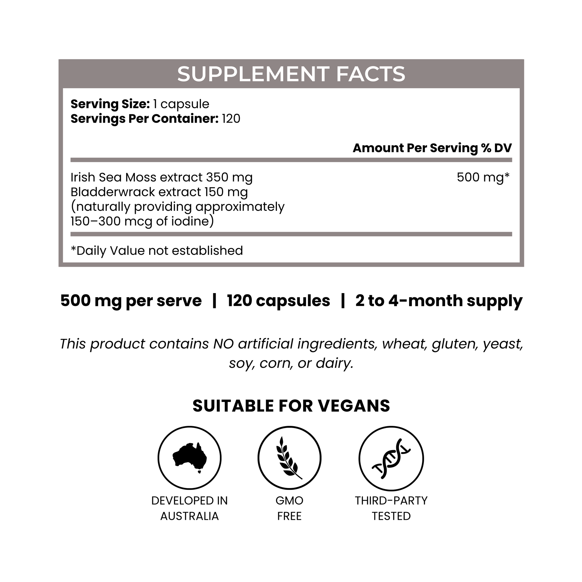 Each serve provides approximately 150–300mcg of iodine, which supports your daily recommended intake for healthy thyroid function.