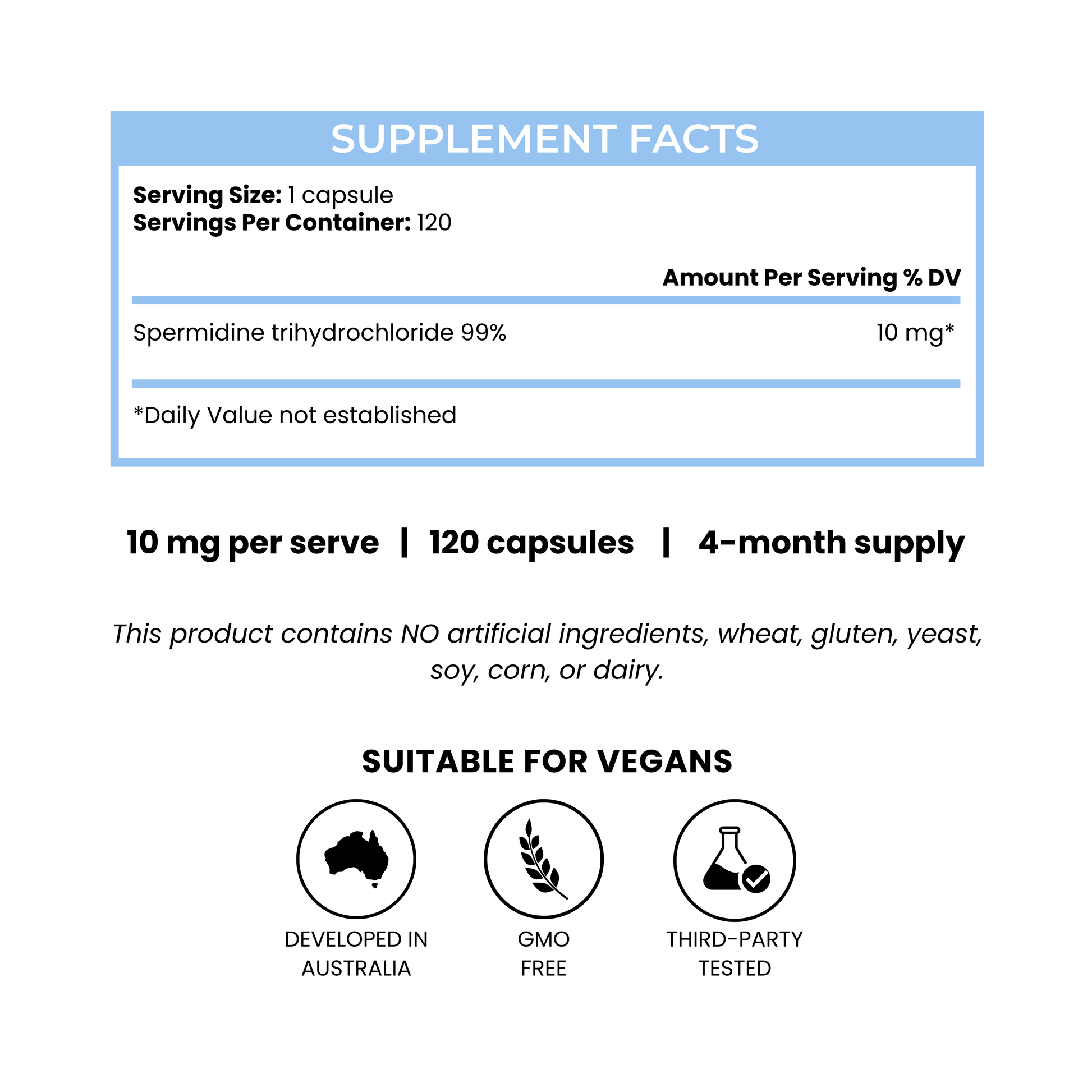 Spermidine can be taken at any time of day, with or without food. Consistency is key for optimal results.